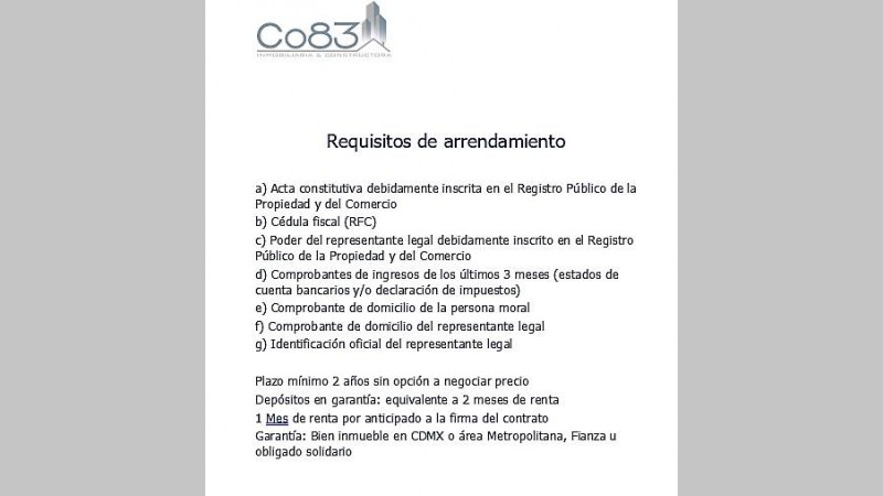 Mantenimiento aprox. de $80 por m2.