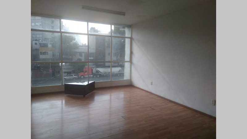 Oficina en cuarto piso con vista al exterior.