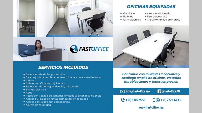 Tu oficina en el mejor lugar y con servicios incluidos solo con Fast Office en Plaza Silver Center a solo unos minutos de Periférico y Av. Vallarta y lo mejor es que no ocupas aval para obtener tu oficina. Visitanos y contrata hoy mismo!!